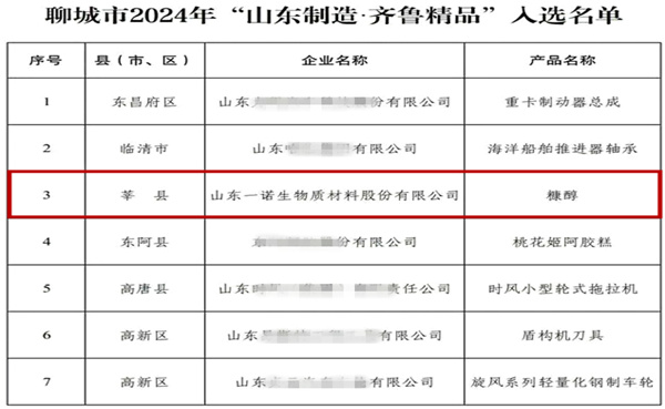 喜訊:一諾生物糠醇入選2024“山東制造·齊魯精品”
